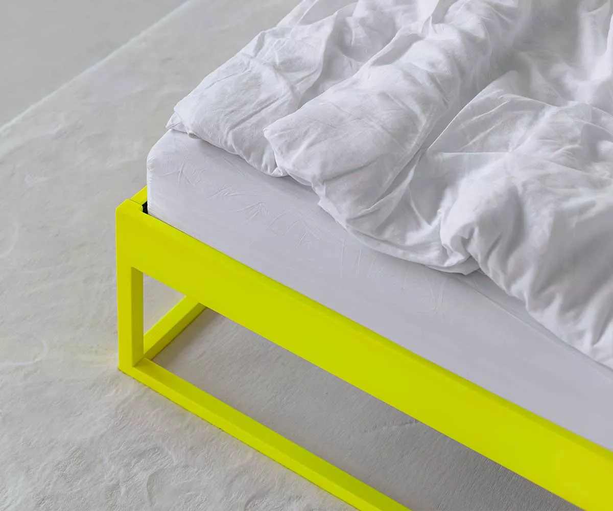 Elevate your sleeping area with style by choosing the simple metal bed frame SIMPLEX, which comes without a headboard or footboard, allowing you to customize your sleeping space according to your preferences. By using the textiles, you can create a cozy and modern retreat in your bedroom. The bed's various color options enable it to exude both elegance and uniqueness.
