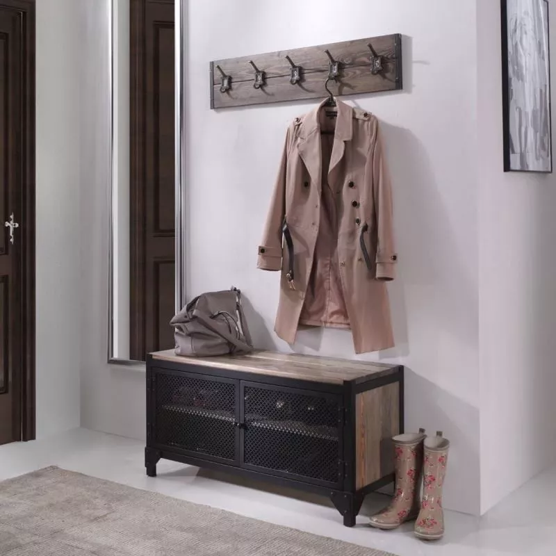 Der solide Schuhschrank wird aus Winkelstahl und massivem Kiefernholz gefertigt. Hinter seinen Türen verfügt der Schrank über 2 Fächer für mehrere Paar Schuhe. Denn wer nicht möchte, dass sich Schuhpaare in undefinierbaren Sammlungen verlieren, gönnt ihnen ein echtes Zuhause. So hat jedes Paar einen Platz. Dank der stabilen und starken Konstruktion kannst du gerne Platz nehmen und deine Schuhe bequem anziehen.