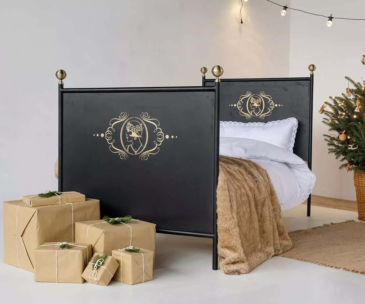 Das Metallbett LAMIN FEMME ist was ganz Besonderes. Wir haben uns von alten Metallbetten inspirieren lassen und eine klassische Form mit viel Eleganz designt. Mit schwarzer Strukturfarbe beschichtet und mit wünderschönen mit Messing beschichteten Kugeln geschmückt strahl das Bett viel Nostalgie aus.