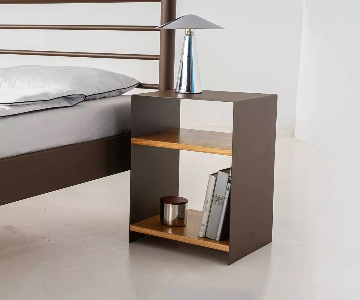Moderner Nachttisch NAVIS aus Metall und Eiche