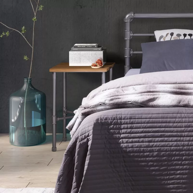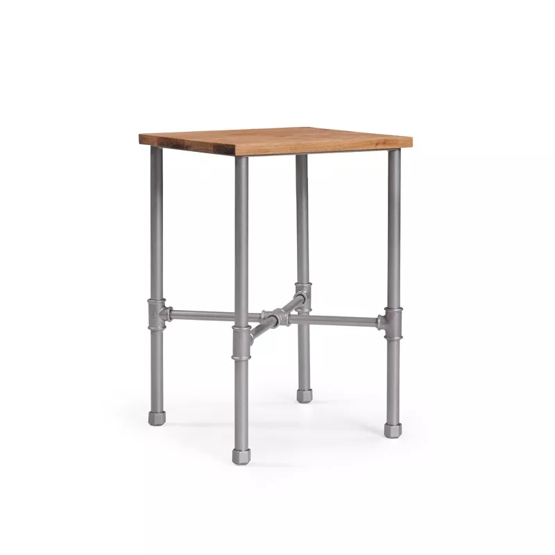 Der Nachttisch NODUS wird aus Wasserrohren und Rohrverbindern gefertigt und ist nicht nur für ein Schlafzimmer eines Hobby-Klempners geeignet. Verpasse Deinem Schlafzimmer einen Industrial Look! Die quadratische Ablage aus Eichenholz bietet genugend Platz um die wichtigsten Objekte nachts griffbereit zur Hand zu haben. Der Nachttisch ist sehr praktisch und eine ideale Ergänzung zu jedem Bett. Der kleine Tisch bekommt eine umweltfreundliche Pulverbeschichtung in Schwarz, Weiß oder Silber. Solltes Du eine andere Farbe wünschen kannst Du uns gerne kontaktieren.