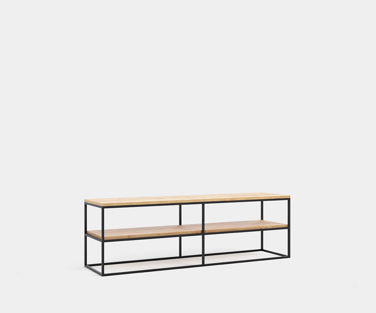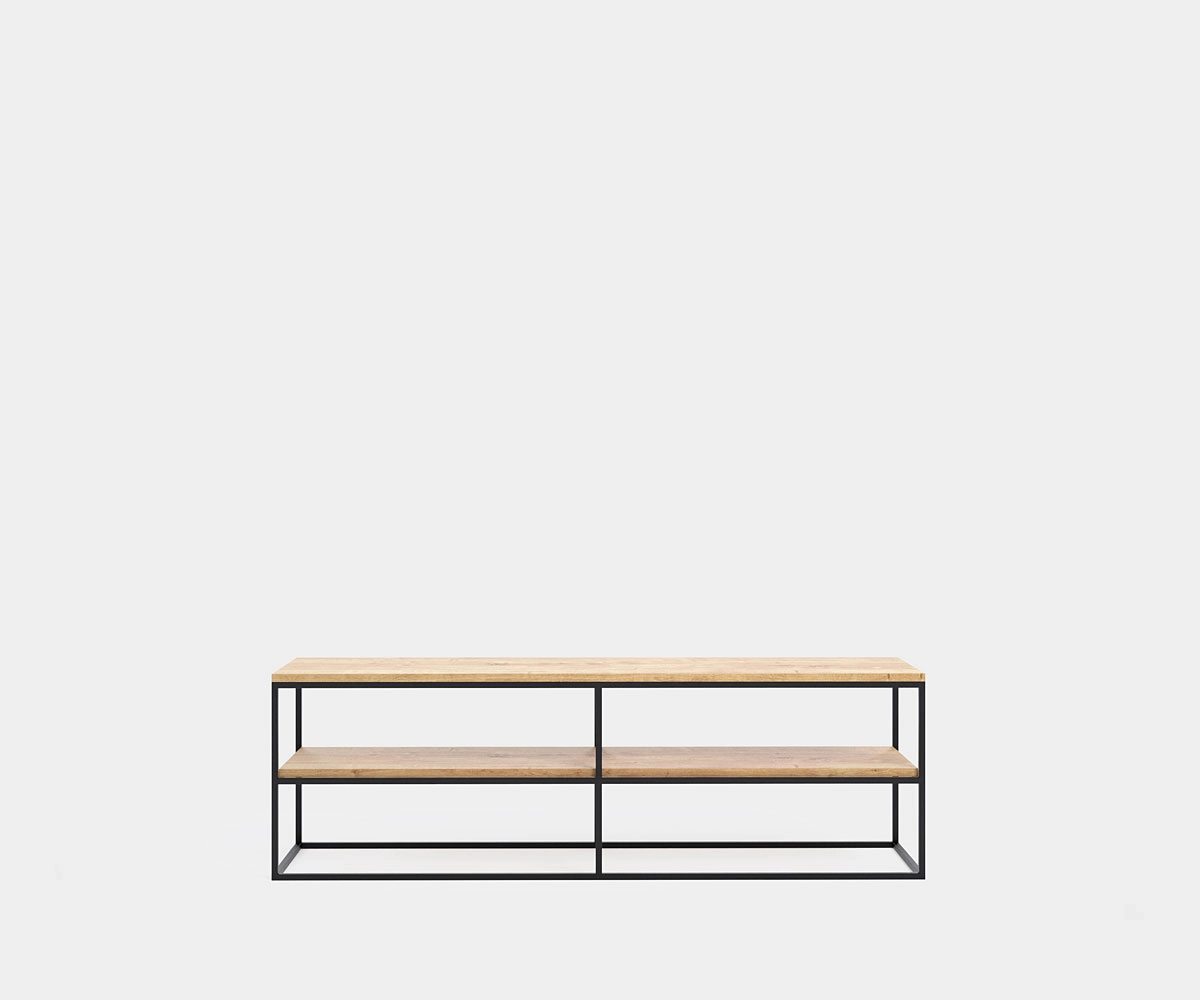 Der TV-Lowboard OSSA wird aus Metall und Eiche gefertigt und anschließend pulverbeschichtet. Das Board ist sehr stabil und bietet allen Komponenten einer TV und HIFI Anlage Platz. Der geradelinige Design ist auf das Wesentliche reduziert und ein Maximum an Minimalismus. Schlichte Form, klare Linien, dezente Farben – genau so soll sich ein moderner TV-Board präsentieren.