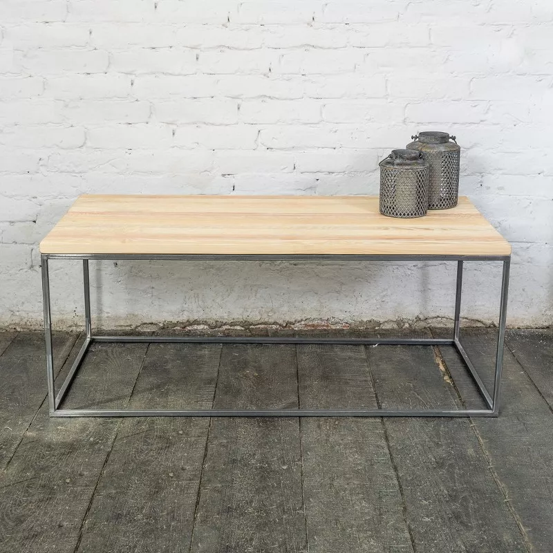 Der robuste Couchtisch PINUS long raw wird aus dünnen Vierkantrohren und Kiefernholz gefertigt. Wie der Name schon andeutet, ist der Couchtisch unbehandelt. Das Gestell wird nach der Fertigung nur mit einem matten Klarlack geschützt, genauso wie die Holzplatte, die kurz davor durch die Bürstung eine schöne Oberfläche erhält. Dank der Bürstung wird die Oberfläche besonders robust, da die weichen Holzanteile durch rotierende Bürsten ausgebürstet werden.