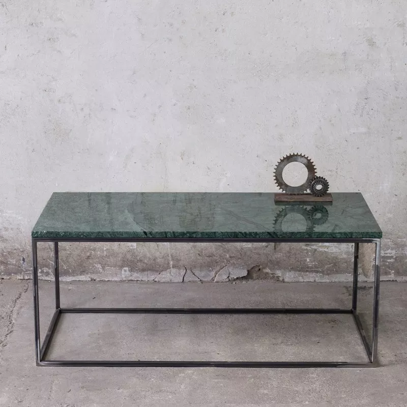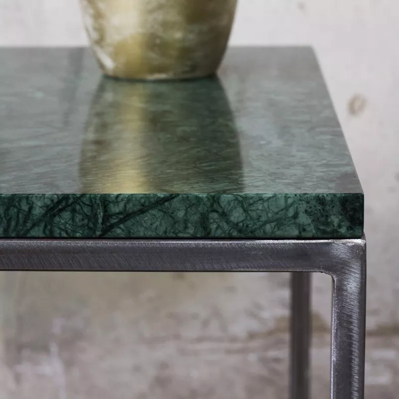 Der hochwertige Couchtisch RANA long aus Stahl und Marmor hat ein modernes und minimalistisches Design, der alle Blicke auf sich zieht. Die wunderschöne Marmorplatte aus dem Verde Guatemala Marmor hat einzigartige Maserungen, die jedes Stück zu einem Unikat machen. Das geradlinige und schlichte Metallgestell bewirkt, dass die schwere Platte sehr leicht und harmonisch wirkt. Die vier unterschiedlichen Gestellvarianten ermöglichen den Couchtisch RANA long in verschiedene Einrichtungsstile zu integrieren.