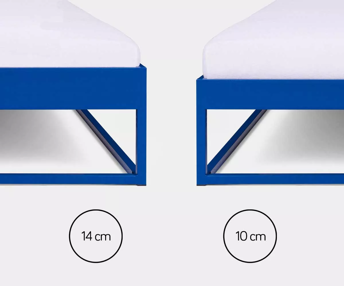- • Ohne Lattenrost (wir empfehlen bei Einlegetiefe von 10 cm max. 6-7 cm hohe Lattenroste, damit die Matratze 3-4 cm in den Rahmen einsinkt)