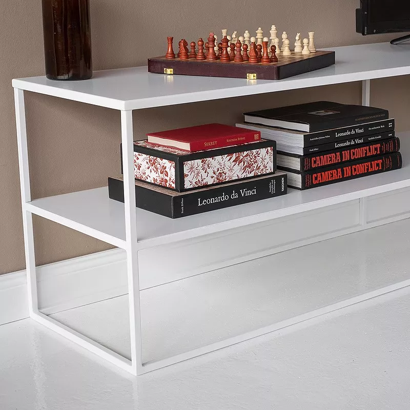 Das TV Lowboard wird komplett aus robustem Metall gefertigt und anschließend pulverbeschichtet. Wir bieten eine breite Palette an Farben an – von klassischen Tönen wie Schwarz und Weiß bis hin zu trendigen Farben wie Dunkelblau oder Burgund. Diese hochwertige Verarbeitung garantiert nicht nur eine ansprechende Optik, sondern auch eine hohe Stabilität und Langlebigkeit.