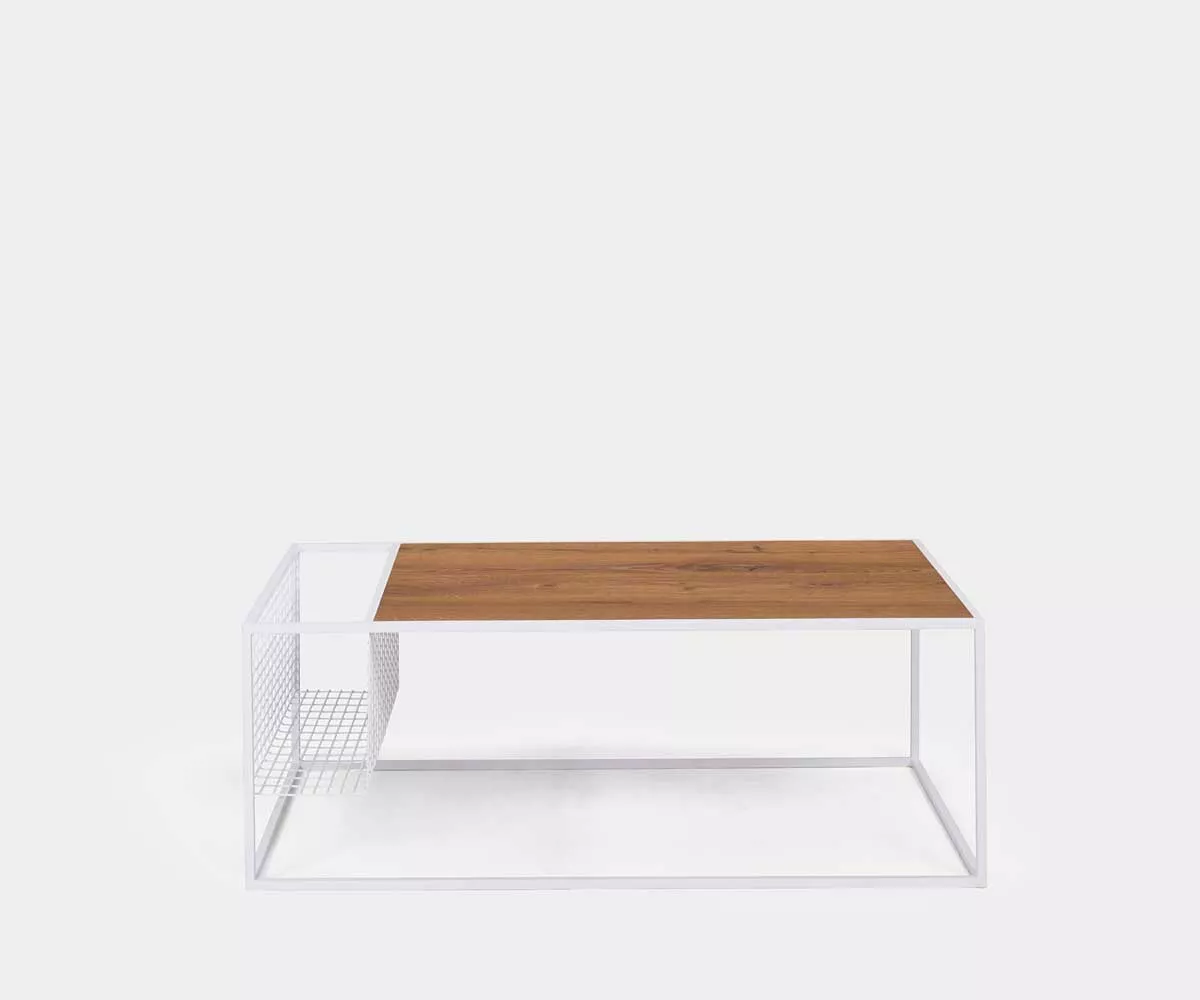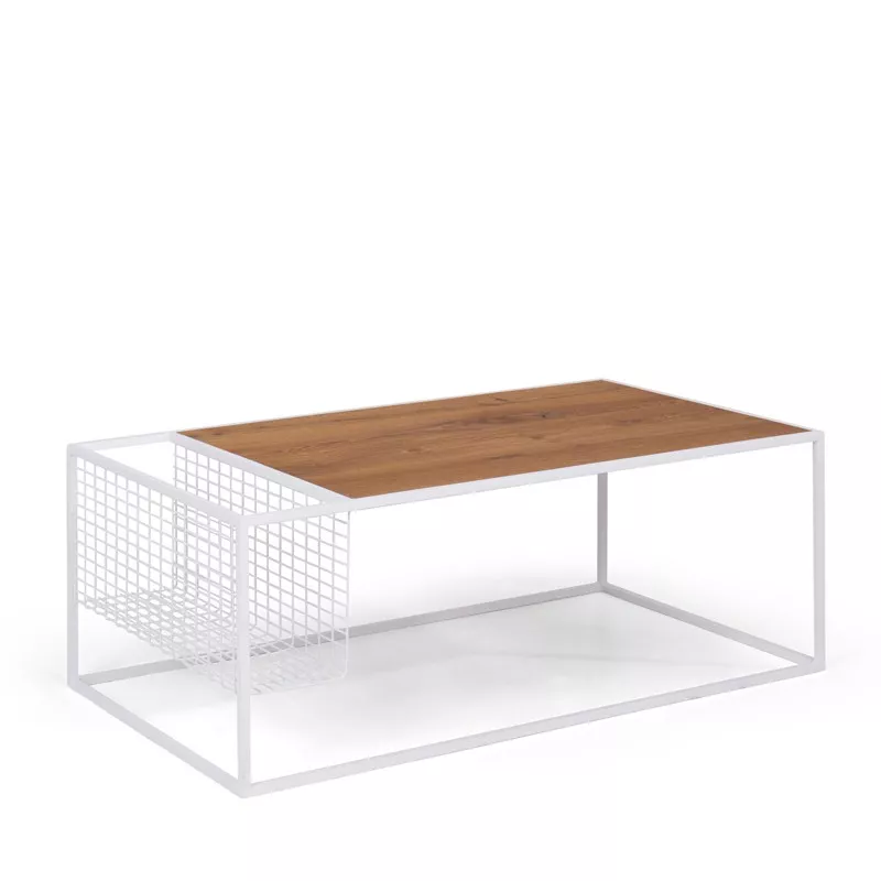 Der Couchtisch SPEL aus der Kollektion SKOG, die in einem skandinavischen Stil designt wurde, ist nicht nur sehr qualitativ sondern auch praktisch. Die wunderschöne dünne Tischplatte aus Eiche rustikal wird in das Metallgestell präzise eingesunken und bietet sehr viel Platz. Die einzigartigen Maserungen der Rustikaleiche machen jedes Stück zu einem Unikat. Das geradlinige und schlichte Metallgestell aus quadratischen Profilen bewirkt, dass der schwere Couchtisch sehr leicht und harmonisch wirkt. Der eingebaute Zeitungskorb bietet viel Stauraum für alle Ihre Magazine und Zeitungen.